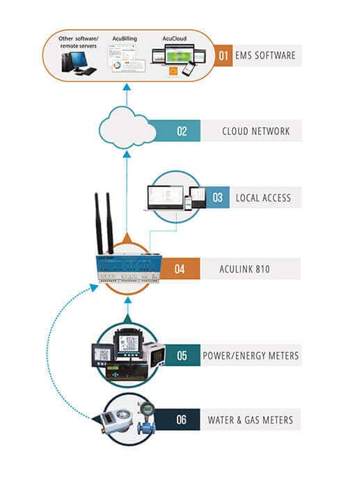 AcuLink 810 is system agnostic - it integrates with any metering device, controller directly and energy management software (EMS) for data analysis.