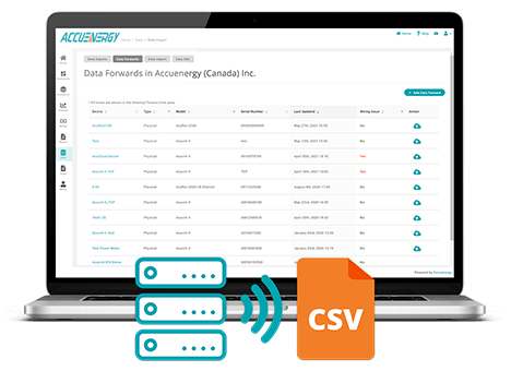 Essential for cross-platform functionality, automatically forward a range of selected parameters from a single device or multiple devices to another server, such as FTP, HTTP, or HTTPs. Files can be forwarded as either CSV or JSON for straightforward data compatibility across a variety of system types.